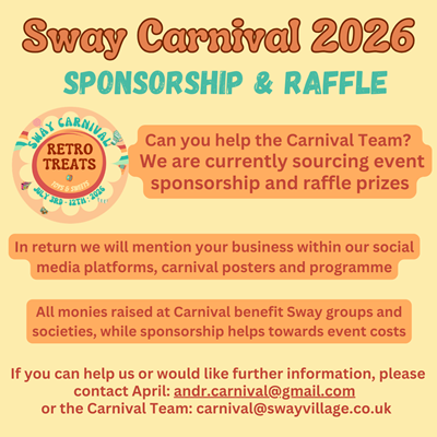 Sway Carnival are looking for Sponsorship and Raffle Prizes for this years Carnival. Sponsorship helps us stage events, while the raffle prizes help us raise funds that will be distributed amongst Sway groups and societies.
